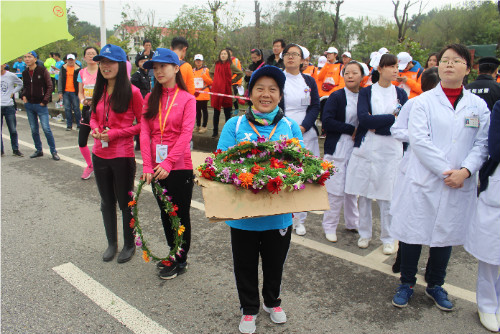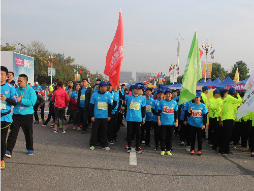 紅旗招展,彩旗飄飄,集團(tuán)公司60人健康跑隊(duì)伍浩浩蕩蕩邁入前方檢錄點(diǎn)
