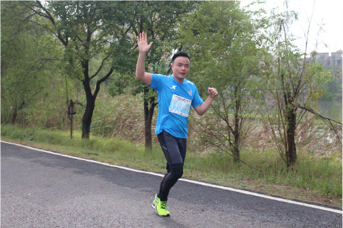 集團(tuán)公司董事長(zhǎng)徐濤同志,賽程7公里處,步伐有力,體能充沛。