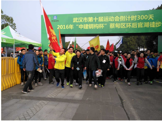 12月10日上午9點(diǎn)整,2016“中建鋼構(gòu)杯”蔡甸區(qū)環(huán)后官湖徒步大賽在山靈水秀的白蓮湖廣場(chǎng)鳴槍開賽。3856名參賽人員從這里出發(fā),在風(fēng)景如畫的濕地公園,領(lǐng)略沿途的自然風(fēng)光,感受非一般清新的武漢。奔馳這樣遠(yuǎn)離都市喧囂的綠色賽道上,不僅是一場(chǎng)完美的人生體驗(yàn),更是一次絕佳的身體放松之旅。湖北大集建設(shè)集團(tuán)在董事長(zhǎng)徐濤的帶領(lǐng)下以最飽滿的熱情迎接這場(chǎng)賽事!