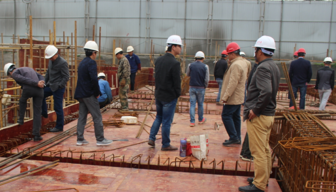 徐副總一行在新久集團項目經(jīng)理的帶領(lǐng)下,重點參觀了項目管理部、在建的地下室工程以及現(xiàn)場的施工管理作業(yè)。徐副總一邊認真傾聽有關(guān)該項目的施工介紹,一邊與華中文谷的項目經(jīng)理做深入的溝通交流,不時提出自己的意見和看法,尤其對現(xiàn)場的施工管理工作做重點探討;各位項目經(jīng)理、施工員認真觀摩,就現(xiàn)場施工的具體問題與新久集團的施工隊伍相互交流意見,相互討論學(xué)習(xí),現(xiàn)場一片和樂融融,互學(xué)互問的熱烈氛圍!