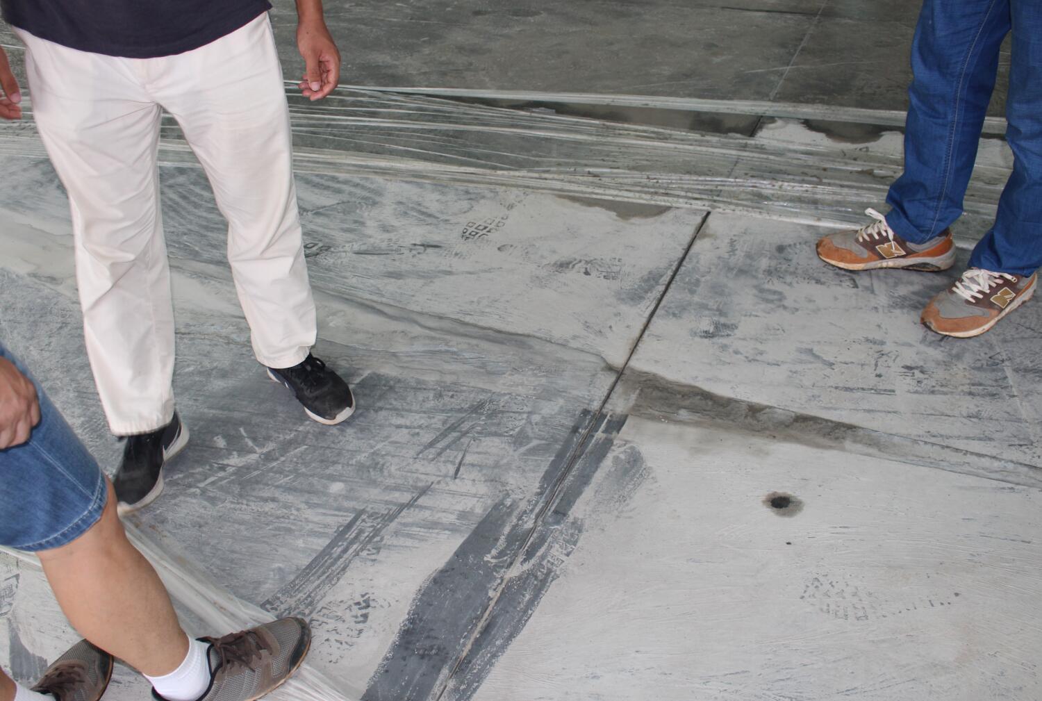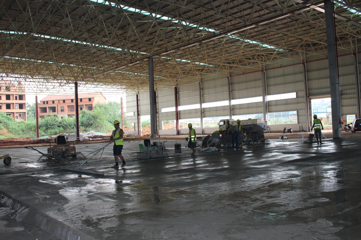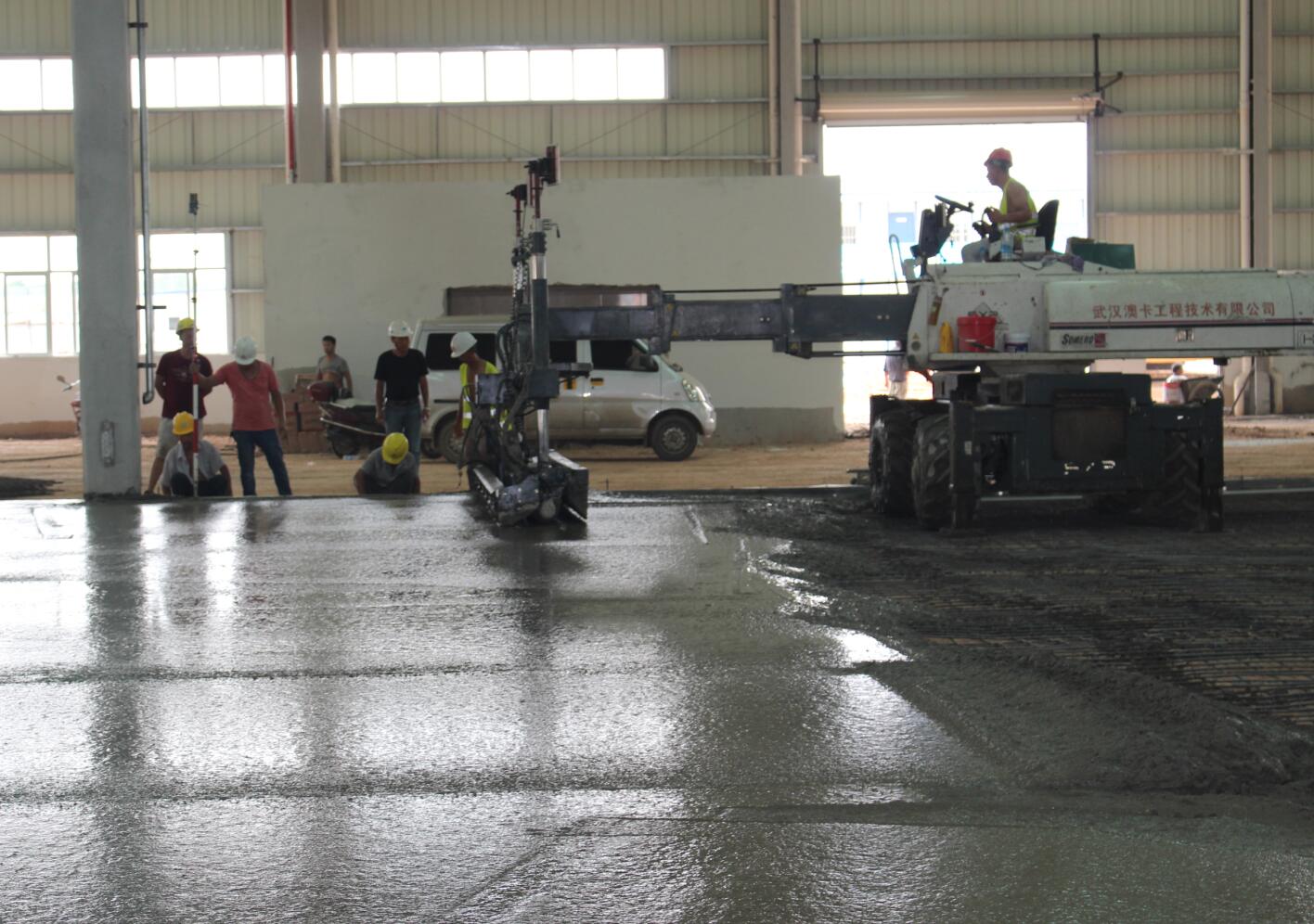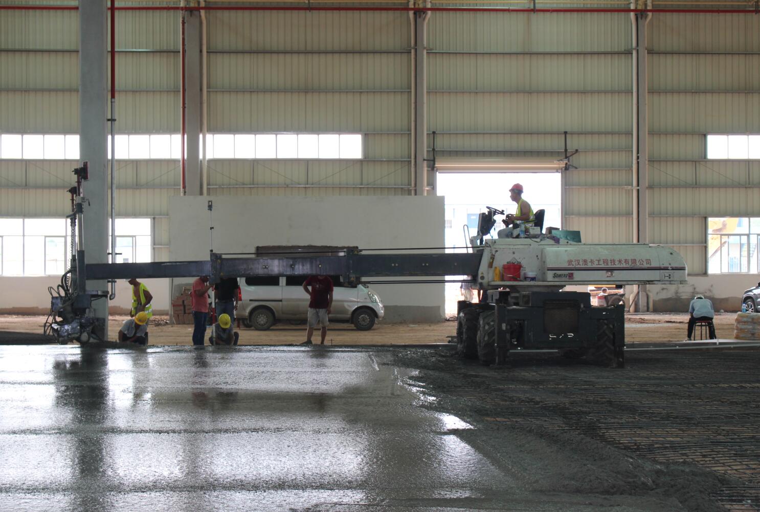 億和中建鋼構(gòu)項(xiàng)目率先在地平混凝土現(xiàn)場引進(jìn)激光振坪儀和磨光機(jī),不僅在效率上大大縮短了施工時間,降低了人工成本,更是在效果上達(dá)到了比人工更為精準(zhǔn)的技藝——混凝土的平整度、密實(shí)度、觀感度以及面層金剛砂顆粒分布度優(yōu)良,高低差控制在3~4mm。