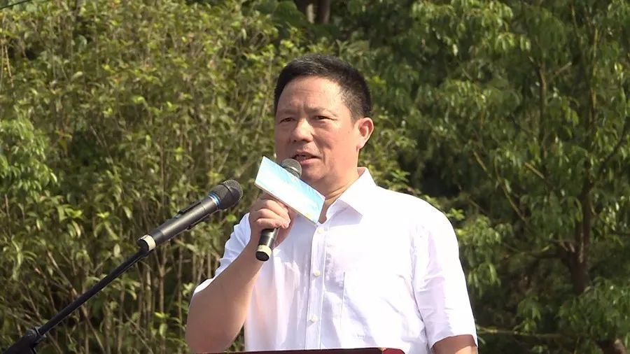 出席開幕式的領(lǐng)導(dǎo)和嘉賓共同上臺參加“疊翠流金”啟幕儀式。