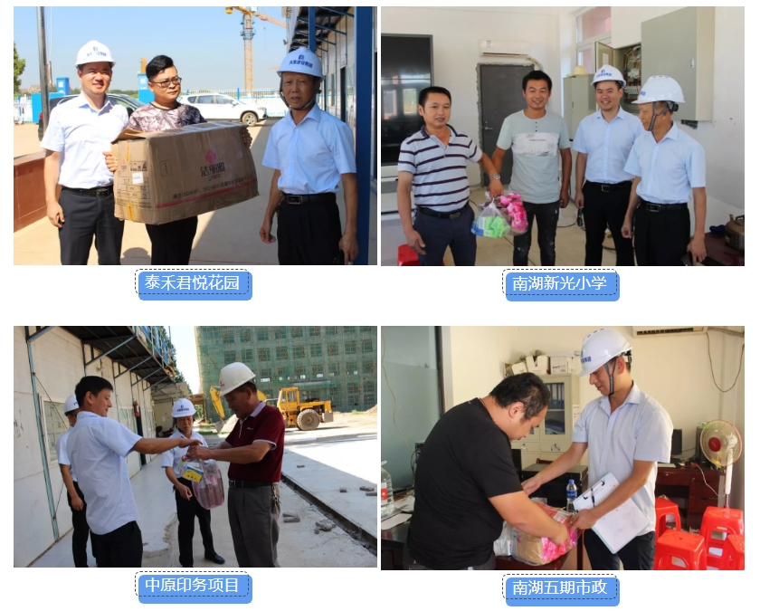 為切實做好夏季施工現(xiàn)場防暑降溫工作,7月19日,集團公司開展一線慰問送清涼活動,前往各項目部發(fā)放毛巾、風油精、人丹、十滴水等防暑降溫物資,同時要求各項目負責人要從以人為本、安全生產(chǎn)的高度,做好高溫防暑措施,合理安排好夏季高溫作業(yè)時間,確保項目一線員工安度酷暑。