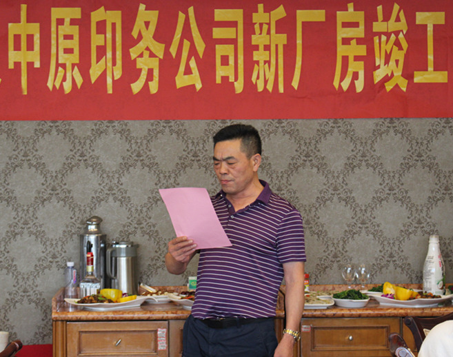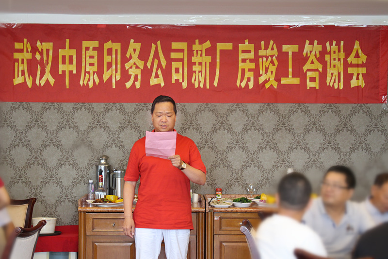6月26日,武漢中原印務(wù)有限責(zé)任公司隆重舉行新廠房竣工答謝會,集團副總經(jīng)理徐家富、項目經(jīng)理田建新、招投標(biāo)部部長胡鵬、財務(wù)部部長鄧雪芬等受邀出席。