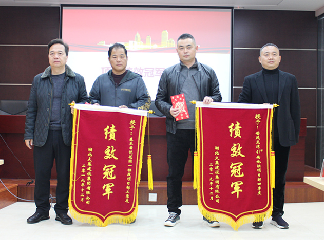 會議開始,行政部公布集團公司2019年第三四季度項目績效考核結果,并由集團董事長徐濤、總經(jīng)理徐遠征為第三四季度項目績效冠軍頒發(fā)錦旗和獎金。