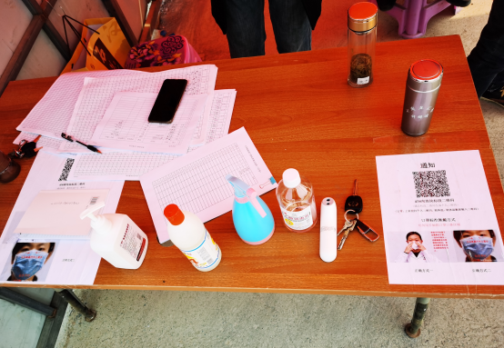 出入口安排專員進(jìn)行信息登記、測(cè)溫、消毒
