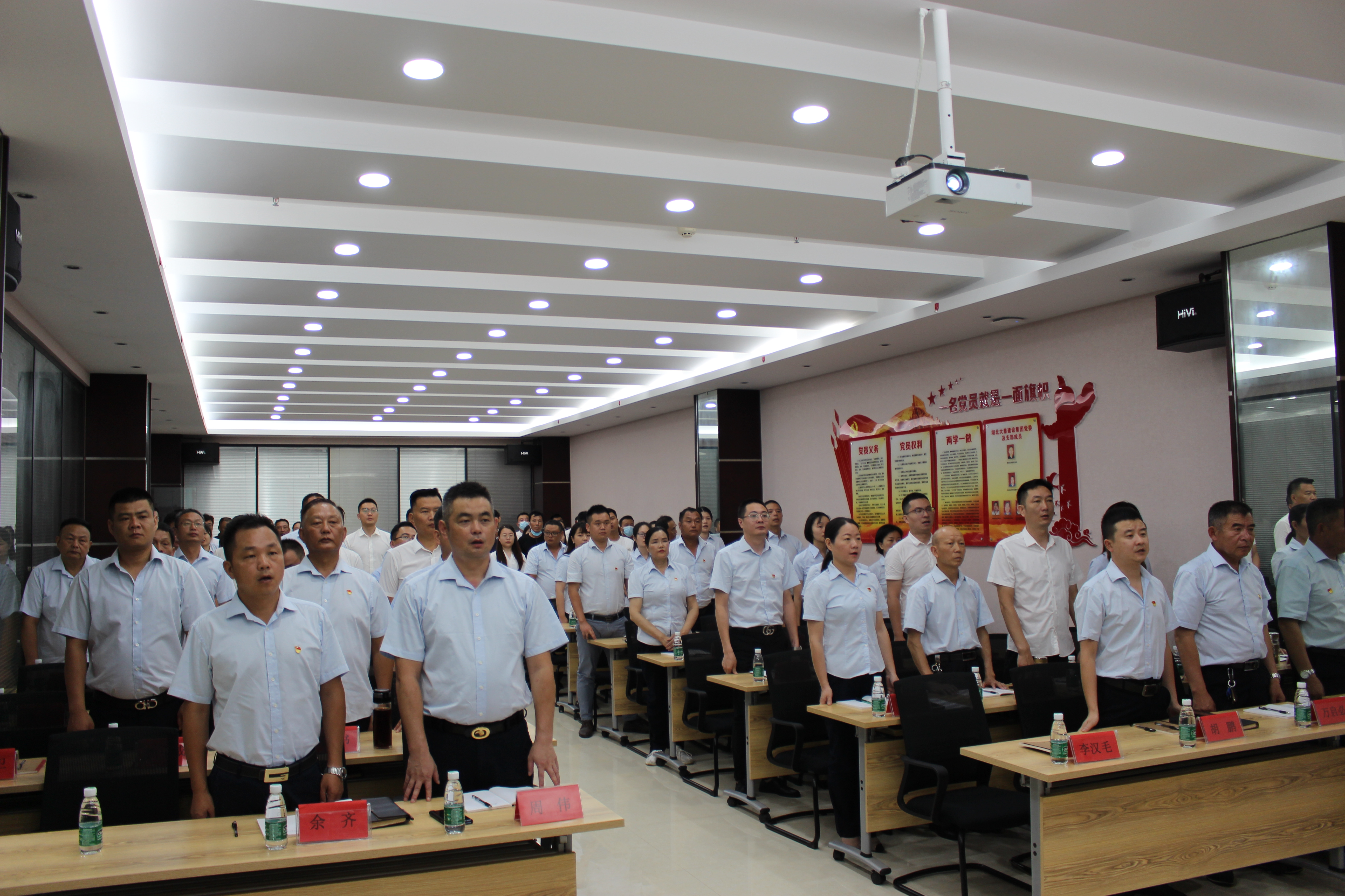 上午8:30,總結(jié)表彰大會在莊嚴的國歌聲中開幕。集團黨委副書記徐家富同志帶領(lǐng)全體與會黨員重溫入黨誓詞,錚錚誓言響徹會議室,共同表達了不忘初心,牢記使命,永遠奮斗的堅定決心。