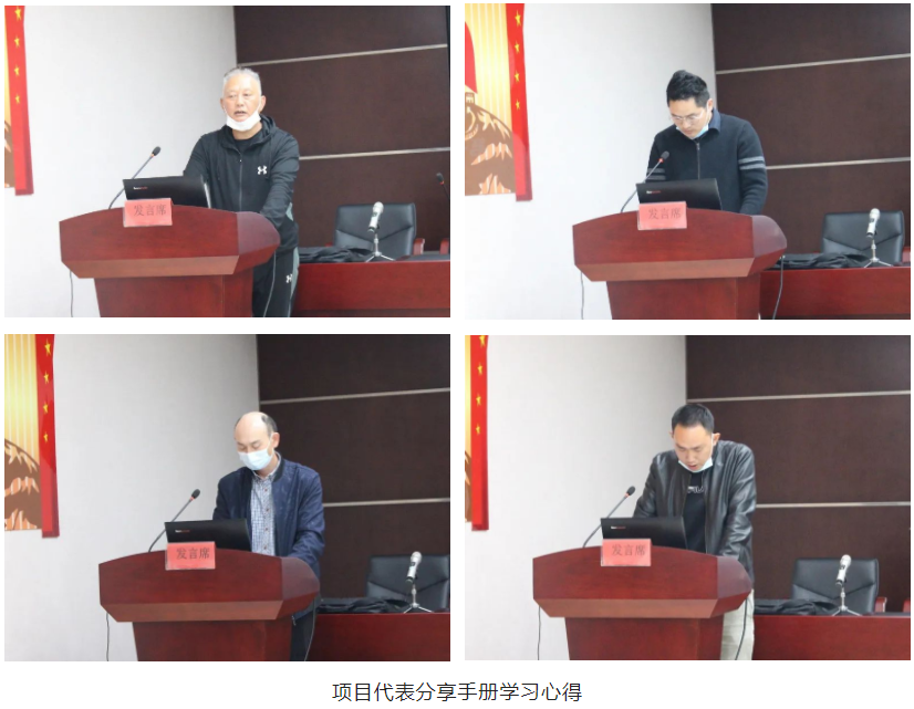 項(xiàng)目經(jīng)理代表周感書、房建施工員代表魏巍、房建安全員代表張彥偉以及市政施工員代表彭文杰依次上臺,從不同角度分享了他們對《湖北省質(zhì)量安全手冊》的學(xué)習(xí)心得。