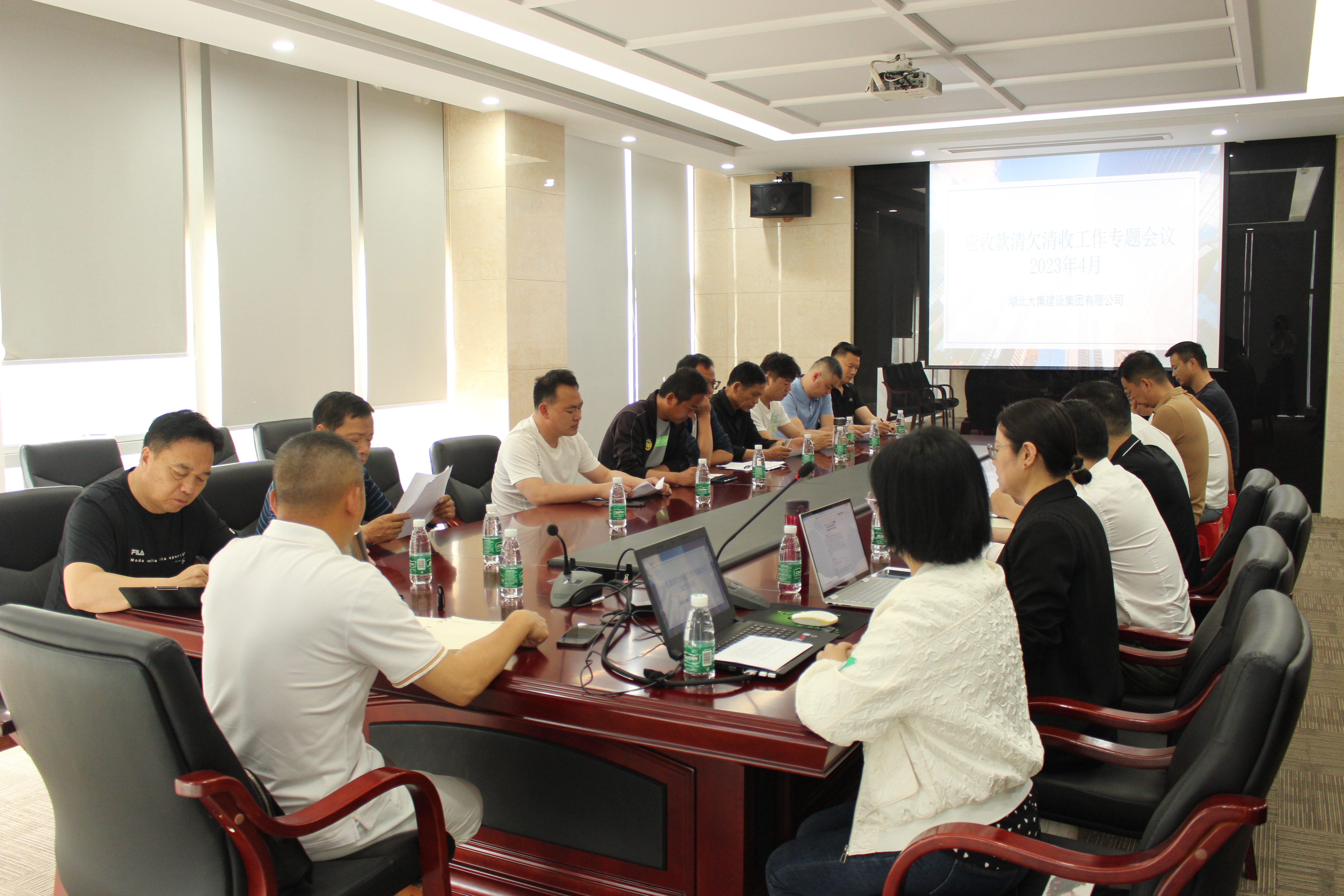 為進(jìn)一步強化項目管理和內(nèi)部管理,最大限度地減少資金占用,提高資金使用率,降低壞賬損失風(fēng)險,推動集團公司高質(zhì)量發(fā)展,4月19日上午,湖北大集建設(shè)集團組織召開了清欠清收專題會議,集團董事長徐濤、總經(jīng)理徐遠(yuǎn)征、副總經(jīng)理徐家富,以及涉及清收清欠項目經(jīng)理、分(子)公司負(fù)責(zé)人、財務(wù)相關(guān)負(fù)責(zé)人、法務(wù)部負(fù)責(zé)人共同參會。