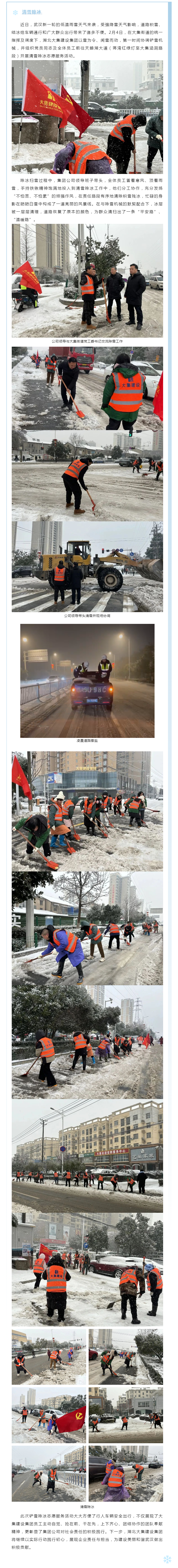 不畏嚴(yán)寒除積雪,破冰開路保安全|湖北大集建設(shè)集團(tuán)組織全體員工清雪除冰