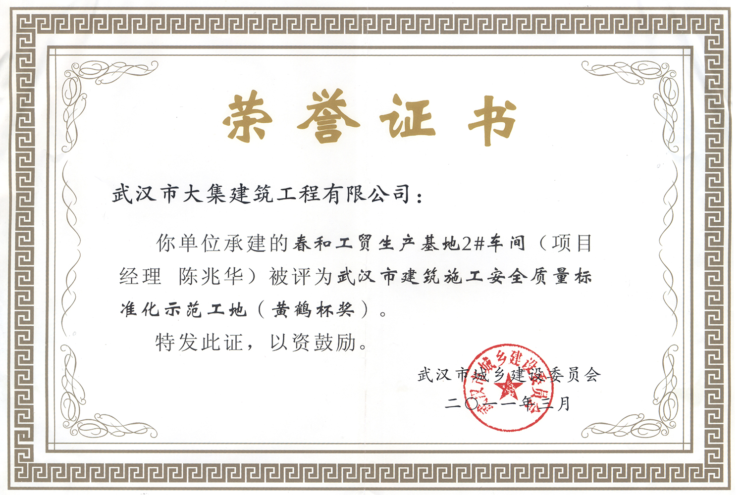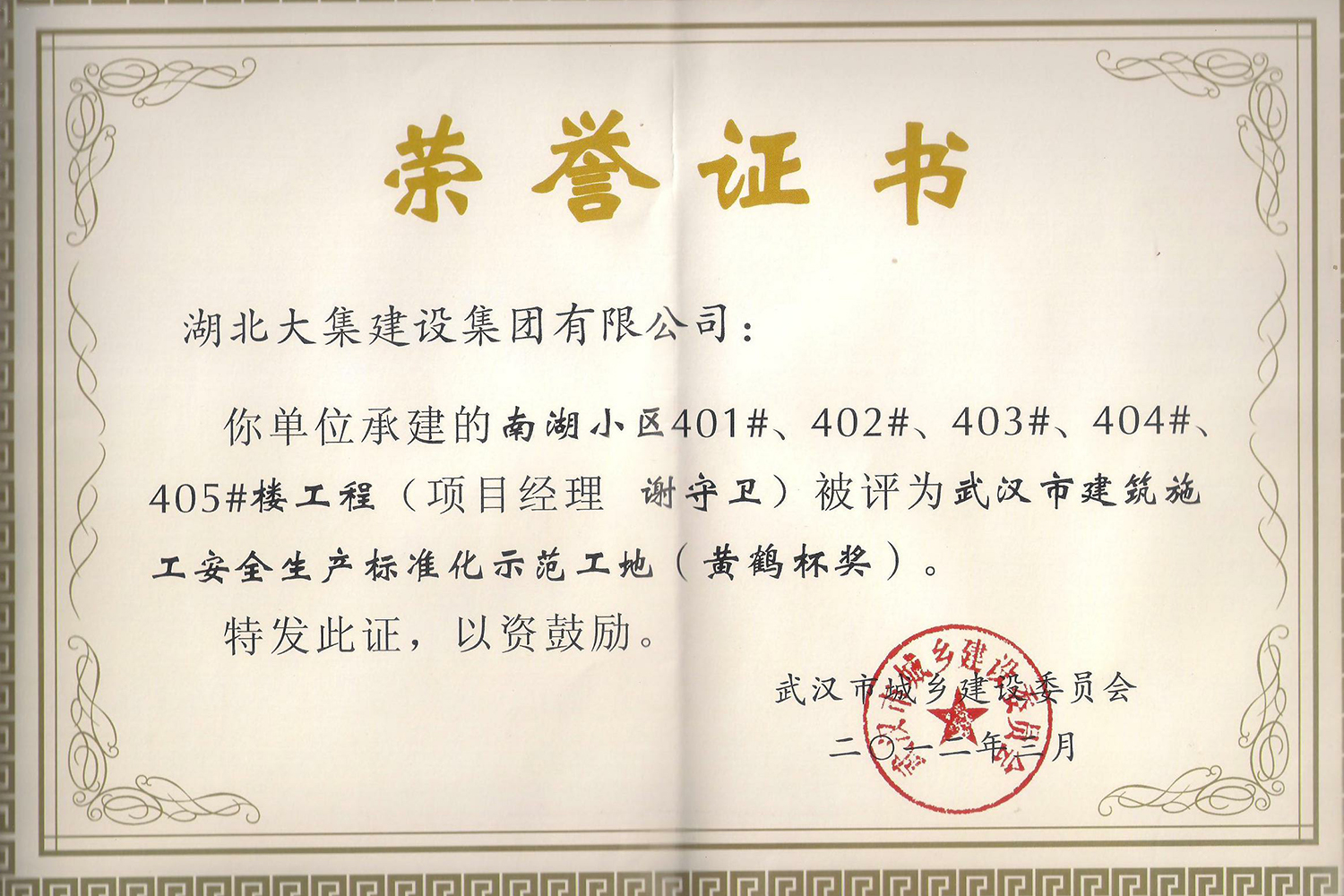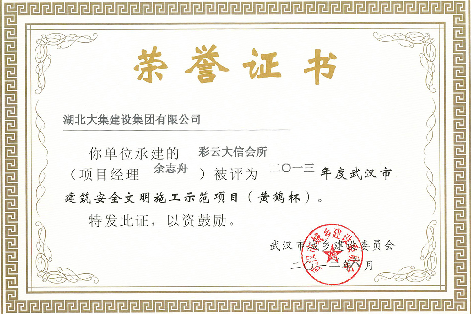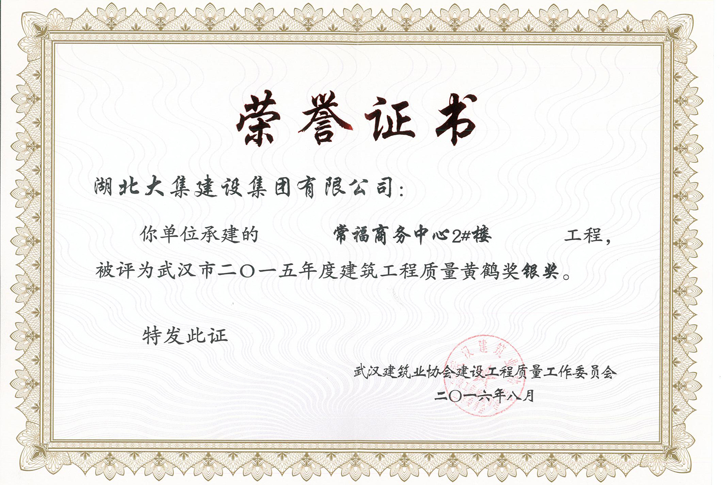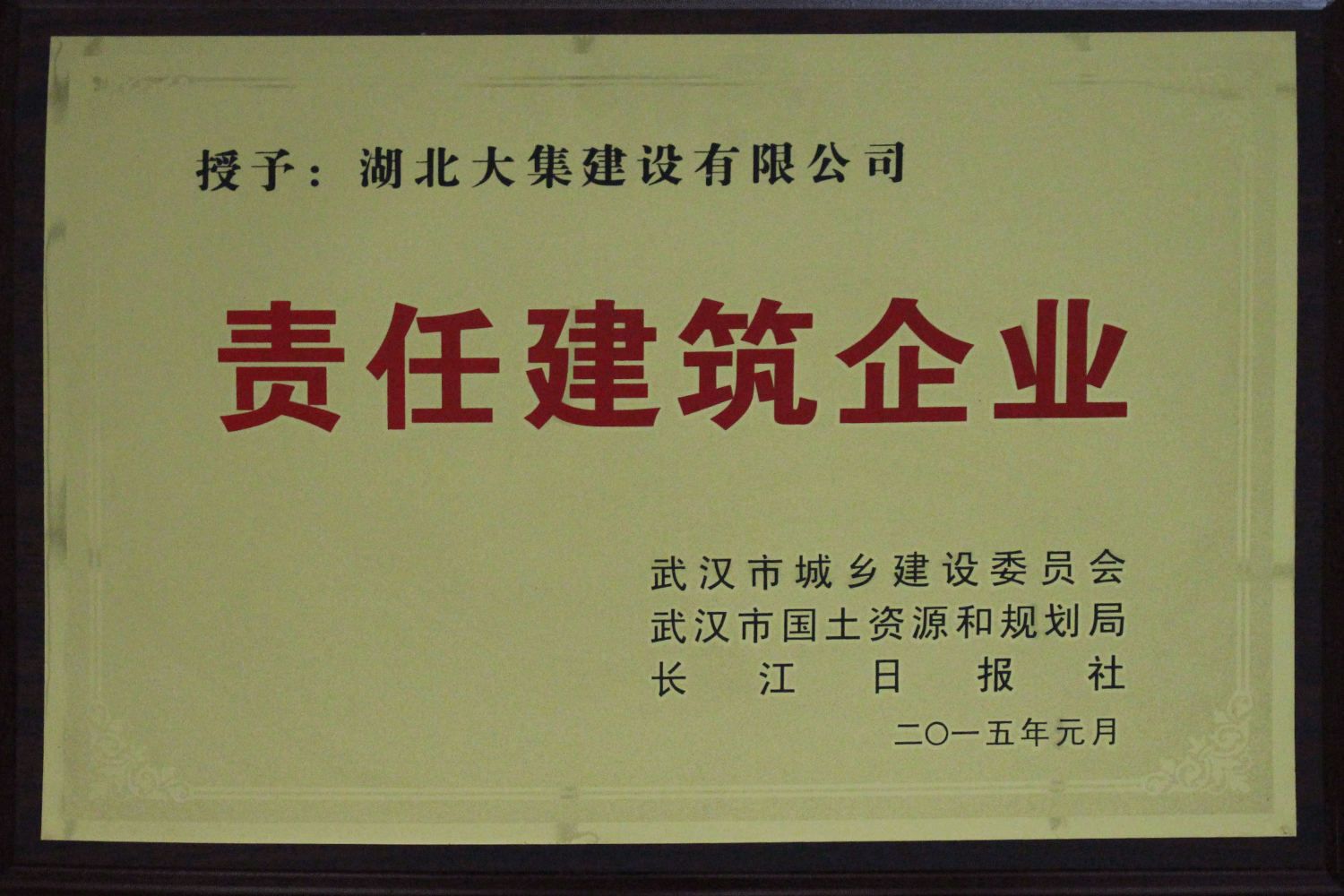 集團(tuán)在發(fā)展壯大的同時,堅持守法經(jīng)營、依法納稅,堅持履行社會責(zé)任,多年來積極投身社會公益事業(yè)。省、市、區(qū)行業(yè)主管部門連續(xù)多年授予公司為“武漢地區(qū)建筑業(yè)AAA信譽企業(yè)”、“武漢地區(qū)建筑業(yè)優(yōu)秀企業(yè)”、“武漢市最具成長性民營建筑企業(yè)”、“勞動保障守法誠信A級單位”等榮譽,多次被省、市工商局評為“守合同重信用”企業(yè),多年被地方政府授予“納稅貢獻(xiàn)獎”。