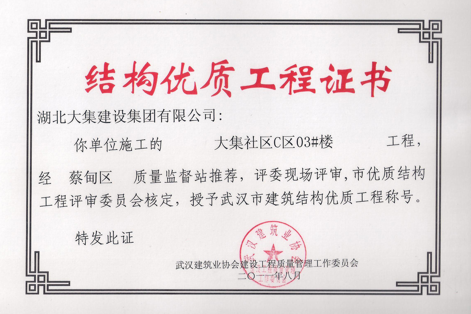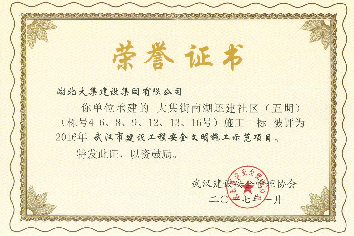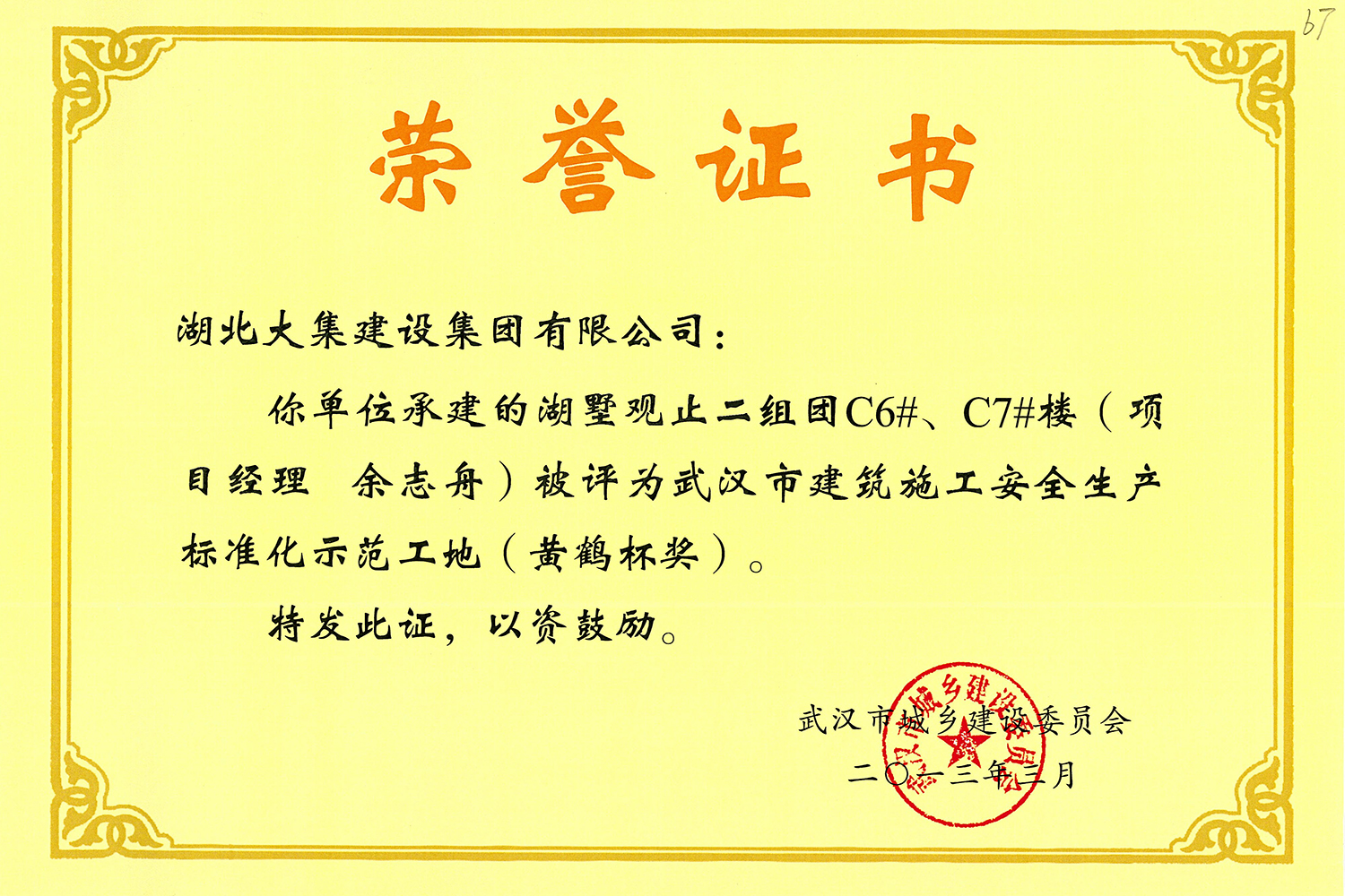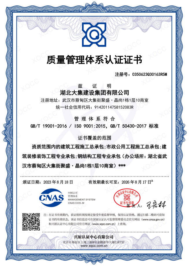 集團(tuán)秉持“安全是紅線,質(zhì)量是品牌,文明施工是形象”的企業(yè)宗旨,不斷加強(qiáng)全面管理,注重提高自身素質(zhì),以完美的履約、優(yōu)良的質(zhì)量、滿意的服務(wù),贏得了信譽。近年來,湖北大集建設(shè)集團(tuán)先后與中石化集團(tuán)、中鐵上海工程局、中建八局、中鐵十二局、碧桂園集團(tuán)、世茂集團(tuán)、綠地集團(tuán)等央企、國企、地方標(biāo)志性建設(shè)單位合作,先后承建了“碧桂園知音豪庭”項目、“碧桂園光谷云境”項目、“大集G區(qū)蓮溪花園”項目等多個高層住宅小區(qū);承建了世茂龍灣46#、47#、48#地塊、花博匯桃李春風(fēng)二期等多個精品高端別墅群項目;承建了“南湖中學(xué)”、“南湖小學(xué)”、“南湖幼兒園”、“博奧幼兒園”等多個教育配套項目;承建了“孝感英眾超算終端科技產(chǎn)業(yè)園”、“鴻盛華全球航空服務(wù)產(chǎn)業(yè)園”、“盟盛汽車產(chǎn)業(yè)園”、“中原印務(wù)晶毅”等多個具有特殊設(shè)備安裝需求的鋼、混結(jié)構(gòu)工業(yè)廠房項目;承建了“常福商務(wù)廣場”等大型商業(yè)綜合體;承建了后官湖綠道二期、三期,常貴路西延伸段、黃星大道等多條大型道路市政項目;自主開發(fā)了“聚盛晶尚”住宅項目,改善人居環(huán)境,引領(lǐng)綠色棲居新領(lǐng)域;所有工程嚴(yán)格執(zhí)行施工作業(yè)全過程質(zhì)量、安全管理,多個項目被省、市級監(jiān)管單位授予“省結(jié)構(gòu)優(yōu)質(zhì)”、“省安全文明施工現(xiàn)場”、“市結(jié)構(gòu)優(yōu)質(zhì)”、“市安全文明施工示范項目”、“樣板工地”等榮譽稱號。