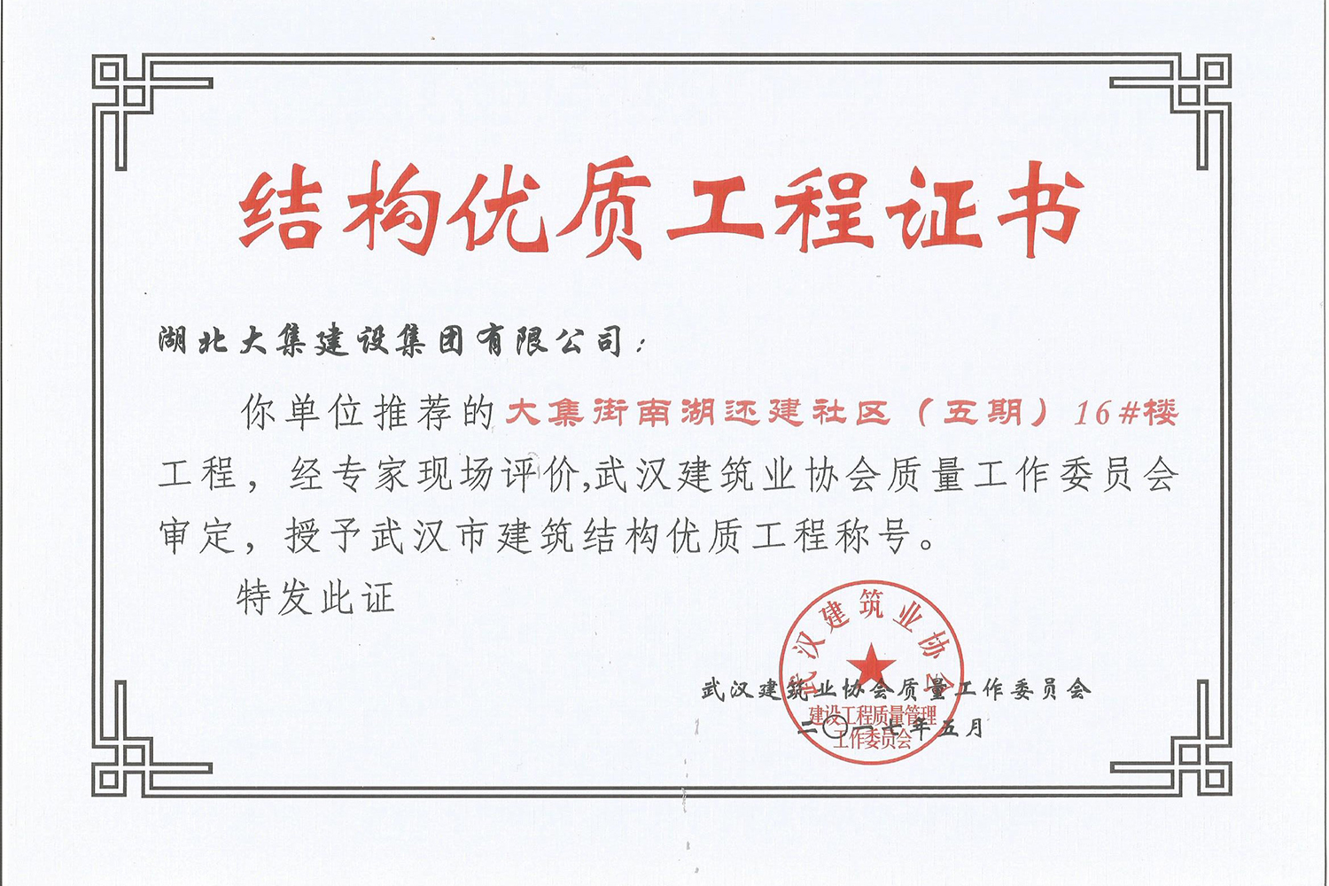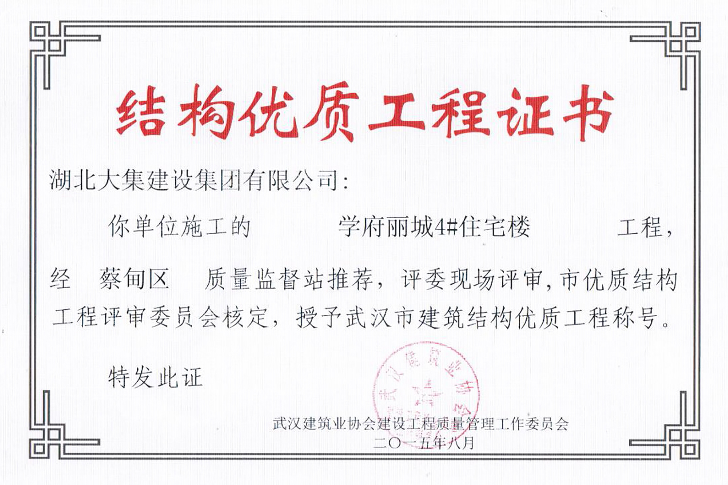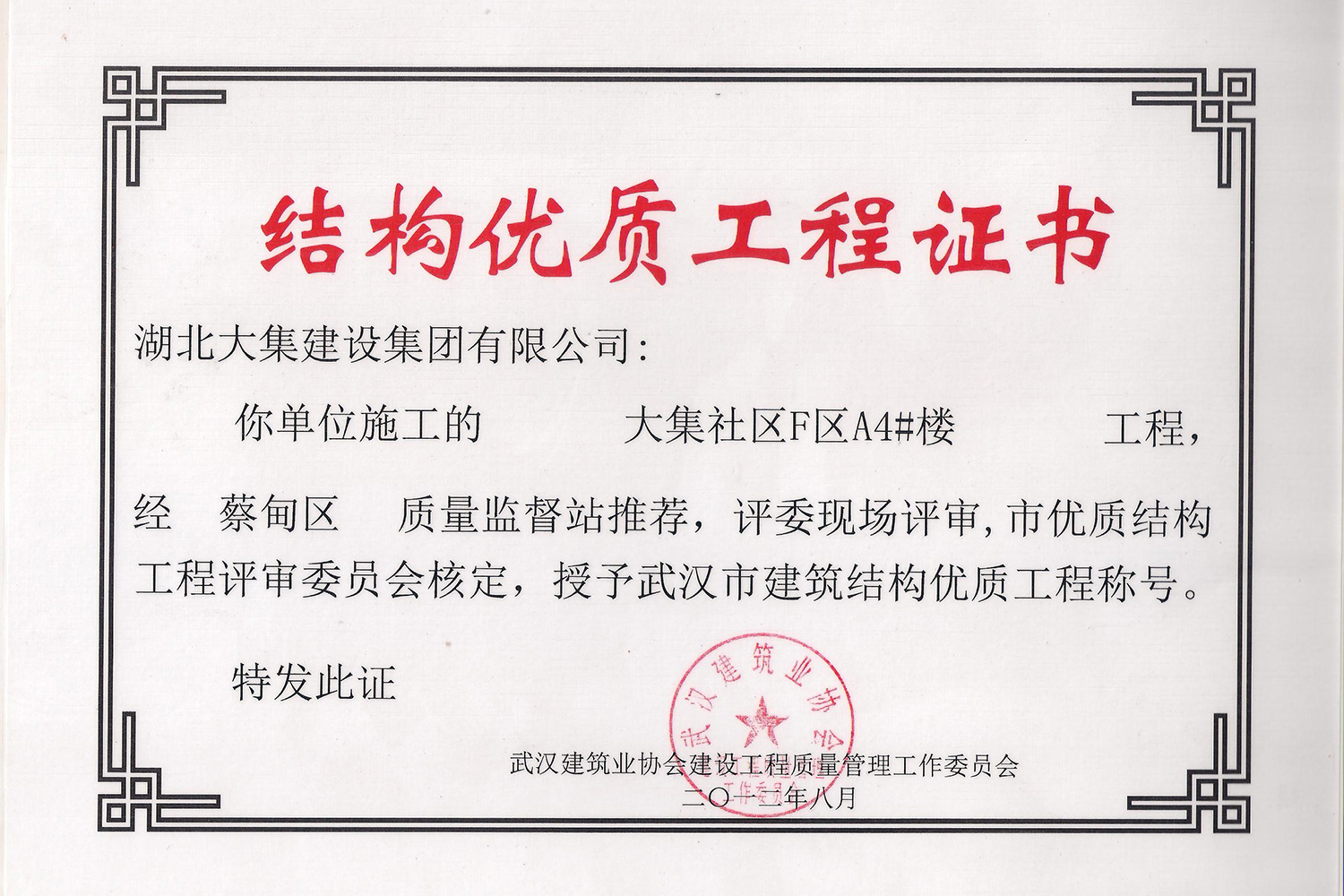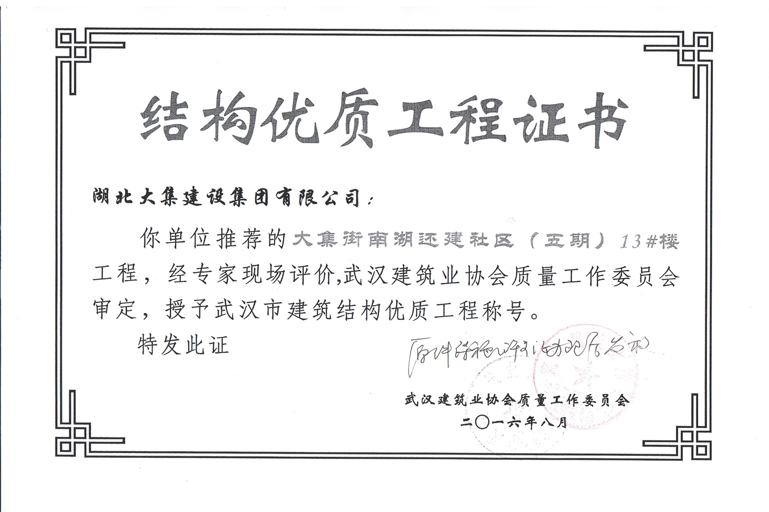 集團(tuán)秉持“安全是紅線,質(zhì)量是品牌,文明施工是形象”的企業(yè)宗旨,不斷加強(qiáng)全面管理,注重提高自身素質(zhì),以完美的履約、優(yōu)良的質(zhì)量、滿意的服務(wù),贏得了信譽。近年來,湖北大集建設(shè)集團(tuán)先后與中石化集團(tuán)、中鐵上海工程局、中建八局、中鐵十二局、碧桂園集團(tuán)、世茂集團(tuán)、綠地集團(tuán)等央企、國企、地方標(biāo)志性建設(shè)單位合作,先后承建了“碧桂園知音豪庭”項目、“碧桂園光谷云境”項目、“大集G區(qū)蓮溪花園”項目等多個高層住宅小區(qū);承建了世茂龍灣46#、47#、48#地塊、花博匯桃李春風(fēng)二期等多個精品高端別墅群項目;承建了“南湖中學(xué)”、“南湖小學(xué)”、“南湖幼兒園”、“博奧幼兒園”等多個教育配套項目;承建了“孝感英眾超算終端科技產(chǎn)業(yè)園”、“鴻盛華全球航空服務(wù)產(chǎn)業(yè)園”、“盟盛汽車產(chǎn)業(yè)園”、“中原印務(wù)晶毅”等多個具有特殊設(shè)備安裝需求的鋼、混結(jié)構(gòu)工業(yè)廠房項目;承建了“常福商務(wù)廣場”等大型商業(yè)綜合體;承建了后官湖綠道二期、三期,常貴路西延伸段、黃星大道等多條大型道路市政項目;自主開發(fā)了“聚盛晶尚”住宅項目,改善人居環(huán)境,引領(lǐng)綠色棲居新領(lǐng)域;所有工程嚴(yán)格執(zhí)行施工作業(yè)全過程質(zhì)量、安全管理,多個項目被省、市級監(jiān)管單位授予“省結(jié)構(gòu)優(yōu)質(zhì)”、“省安全文明施工現(xiàn)場”、“市結(jié)構(gòu)優(yōu)質(zhì)”、“市安全文明施工示范項目”、“樣板工地”等榮譽稱號。
