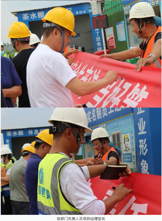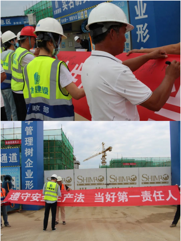 活動開始,集團董事長徐濤、副總經(jīng)理徐家富及各部門負(fù)責(zé)人、各項目經(jīng)理率先在“遵守安全生產(chǎn)法,當(dāng)好第一責(zé)任人”條幅上鄭重簽名,寫下對肩負(fù)安全生產(chǎn)責(zé)任的承諾,隨后各項目施工員、安全員紛紛在條幅上寫下自己的名字,表達(dá)對做好安全生產(chǎn)相關(guān)工作的信心和決心。