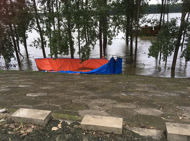 大集建設(shè)集團(tuán)公司義務(wù)為防汛干堤搭建帳篷